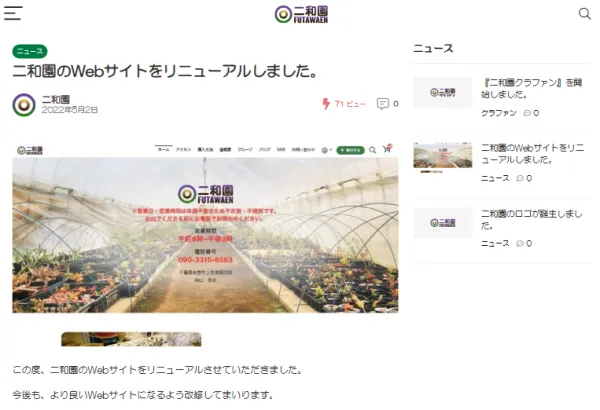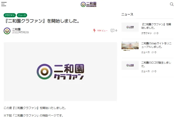 この度、二和園のWebサイトをリニューアルさせていただきました。